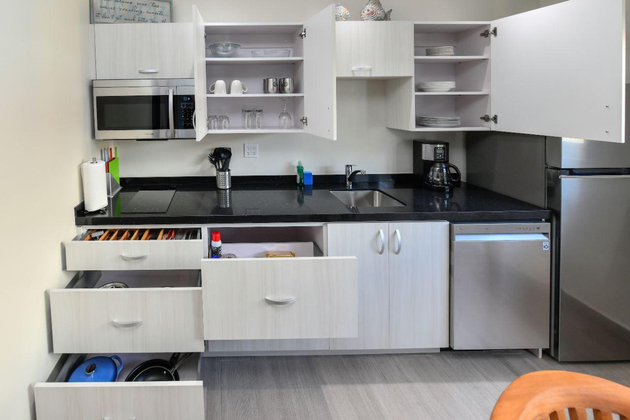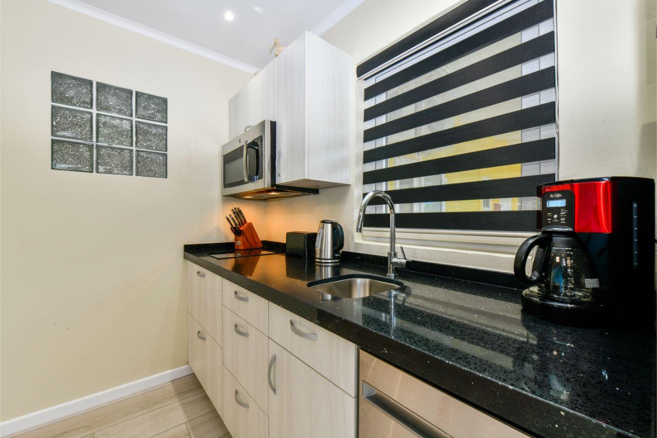The units has a new PVC kitchen with quartz countertop and two burner induction stove top, microwave, coffee maker, toaster etc. Apartments also has a large dining table with four chairs for dining and a separate desk area for working remotely. It naturally has a private bathroom with hot water and a rain shower. On the premises are a coin operated washer and dryer, a pool with loungers for sun tanning and a huge Palapel (covered area), Weber grill BBQ as well as free Wi-Fi (up to 200Mbps down!).