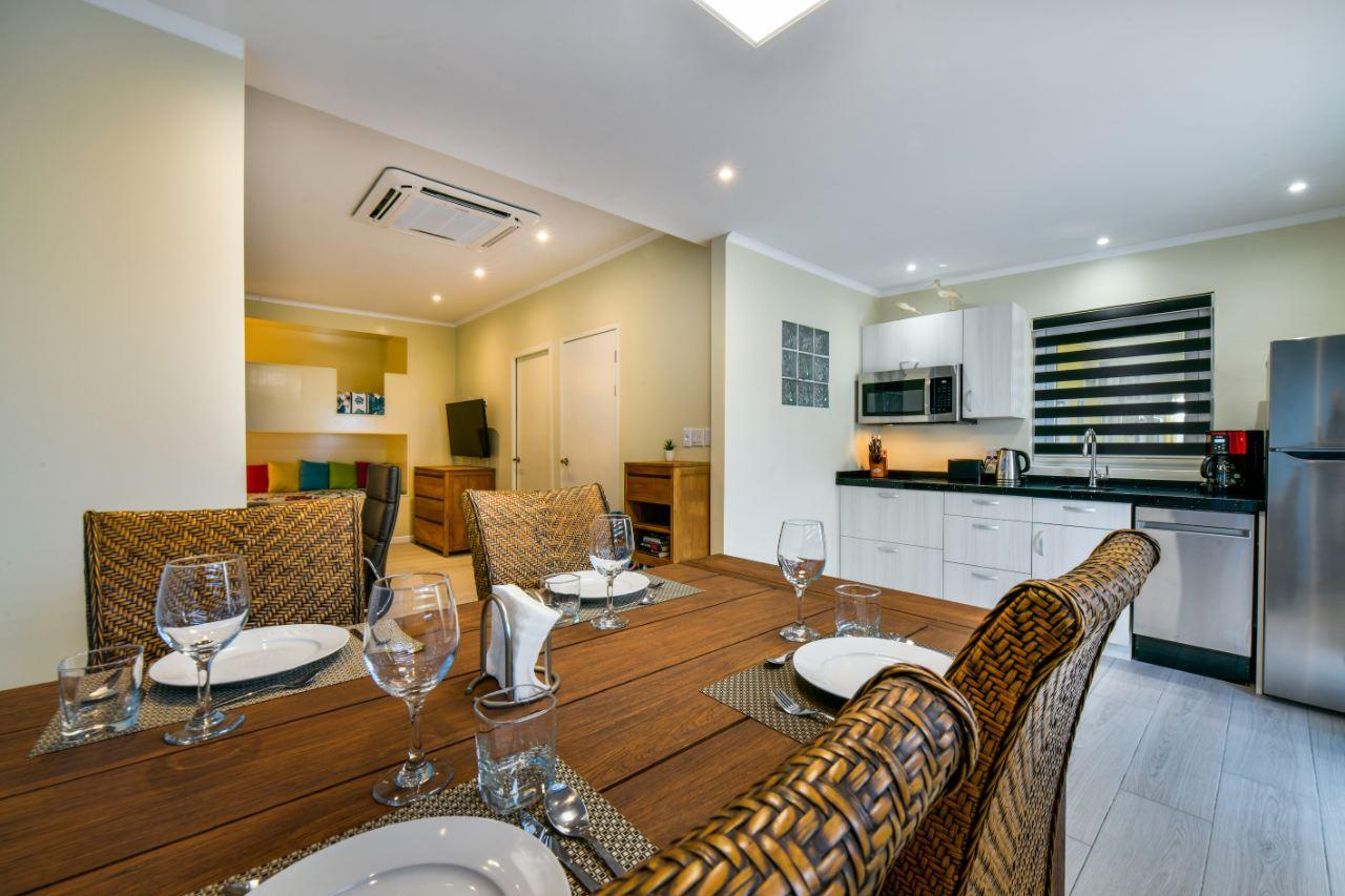 We offer a fully equipped kitchen, king-size bed, and modern bathroom, communal barbecue area, and saltwater pool. Just a stone's throw from Ling & Sons Supermarket, a convenient bus stop and just a short walk from the beach and the downtown area.