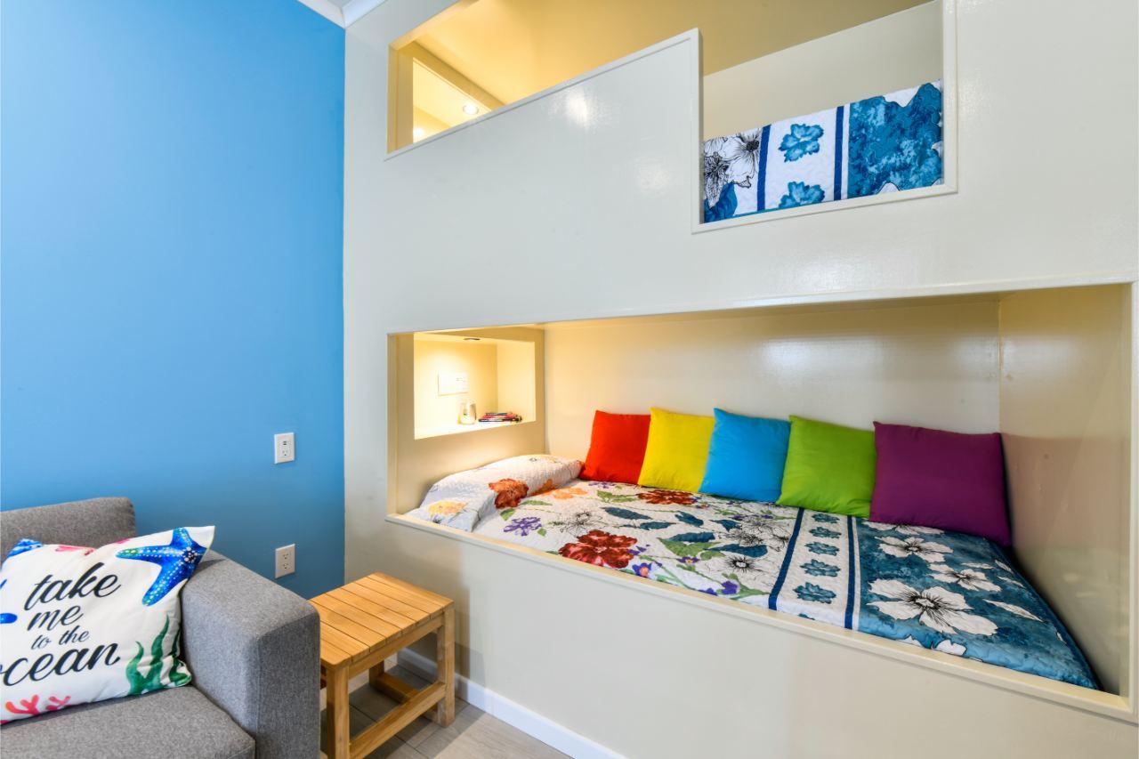 The bedroom has a king size bed and 55" TV. In the living quarter you will find bunk beds that are both twin size. This apartment can accommodate 4 adults easily!